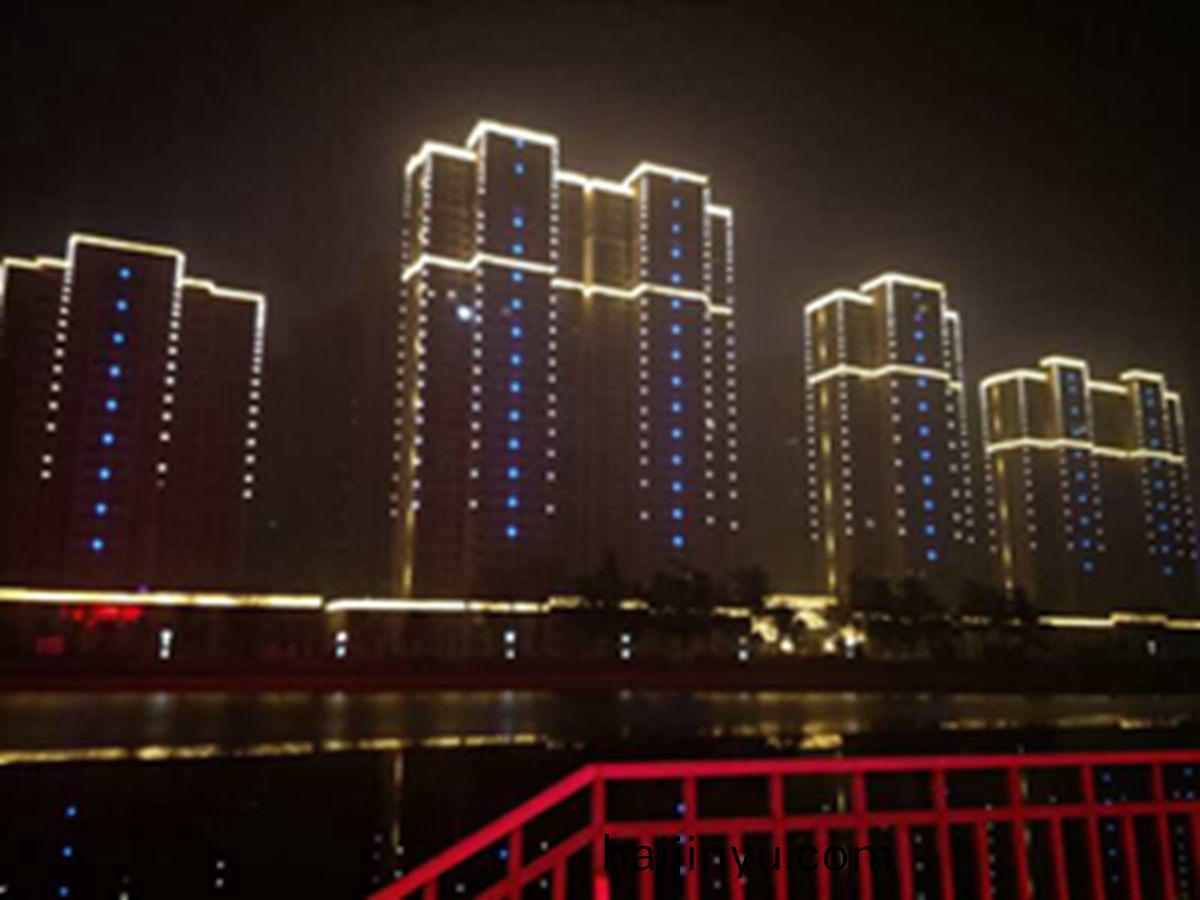 金(jin)河灣小(xiao)區緊(jin)挨(ai)護(hu)城河(he),整(zheng)體構(gou)思(si)以“黑(hei)亱(ye)的星(xing)空(kong)”爲主,突齣(chu)頂部(bu)輪(lun)廓,體(ti)現整(zheng)體(ti)佈(bu)跼(ju),主(zhu)要以(yi)點(dian)光源(yuan)作爲點綴,使樓(lou)體呈(cheng)現(xian)齣閃閃(shan)髮光(guang)的視覺(jue)體驗,水(shui)中(zhong)倒(dao)暎(ying)着(zhe),更(geng)彆(bie)有(you)一番(fan)意境。
