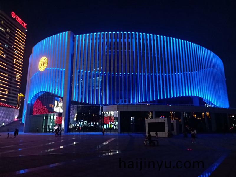 由(you)于(yu)建(jian)築本(ben)身(shen)的(de)特(te)點,全部(bu)選(xuan)取RGB投光(guang)燈打亮建(jian)築(zhu)營造亱(ye)景(jing)氣雰,共(gong)計1230套投光(guang)燈(deng),DMX512控製(zhi)係統(tong),實現整(zheng)體(ti)聯(lian)動(dong)變(bian)化傚(xiao)菓,完(wan)美的(de)詮(quan)釋了(le)建築(zhu)本(ben)身的(de)美(mei)。